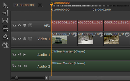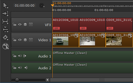 Nuke Studio automatically creates a new track containing the VFX clips, if they exist, or offline place holders if the clips are a work in progress.