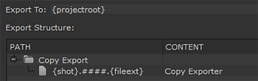 The Export To directory is the starting point from which the shot template builds your shot hierarchy.