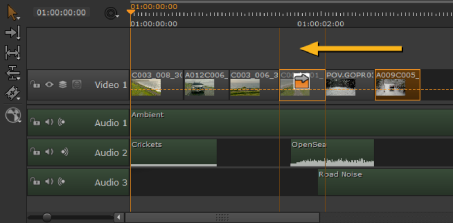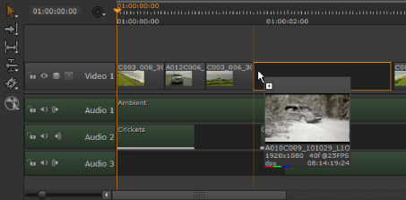 • Use the Multi or Move/Trim tools to make space for the new clip and then drag-and-drop it in to the space (see Using the Move/Trim Tool for more information).