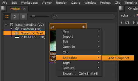 | 2. | Right-click the sequence and select Snapshot > Add Snapshot. |