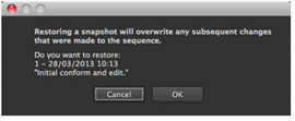 | 4. | Click OK to restore the sequence to the point at which the snap was recorded. |