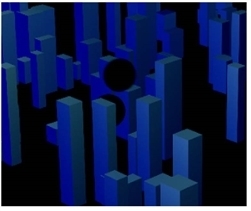 | A holdout of blue buildings with ball shapes held out. |