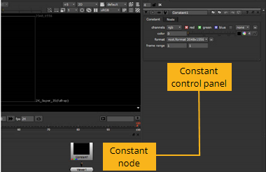 When you insert a new node, its control panel also displays with parameters that let you define what the node produces. In this case, the Constant node creates a solid color backdrop.
