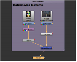 | 10. | Select the Transform1 node and press Ctrl+V to paste the Tracker node copy (Tracker5). |
