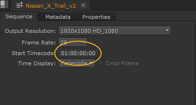 Note: Timelines start at 01:00:00:00 by default, but you can change this to any value using the Sequence panel.