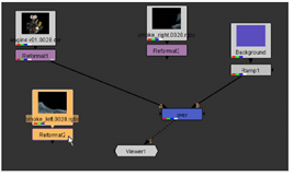 | 9. | An additional Merge node is required. Select Reformat2 for smoke_left. Hold down the Shift key and select the Over node (the first Merge node you inserted). |
