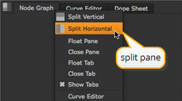 • To divide a pane, click on the content menu (the checkered box at the upper-left corner of each pane), and choose Split Vertical or Split Horizontal.