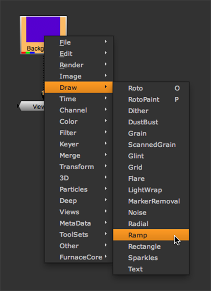 | 7. | Click on the Background node to select it. Then, click the right mouse button and choose Draw > Ramp. |