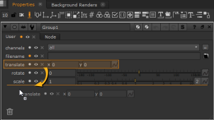 The components you can edit depend on the knob type. For example, a translate knob from a node within the Group allows you to edit the following: