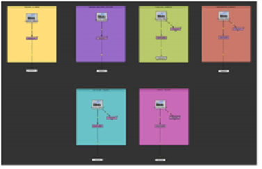 You can use the Backdrop node to visually group nodes in the Node Graph. Inserting a Backdrop node creates a box behind the nodes. When you move the box, all the nodes that overlap the box are moved, too. By inserting several backdrop nodes, you can group the nodes in your node tree onto boxes of different colors and titles. This makes it easier to find a particular node in a large node tree, for example.