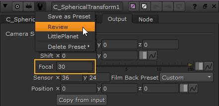 Set the Focal control in the range 15-50 mm or use the Review preset that is included with the node. |