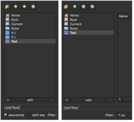 Favorite directories can be accessed by artists with a single click from any Nuke file browser. Typically you would create these favorites for common directories on a project.