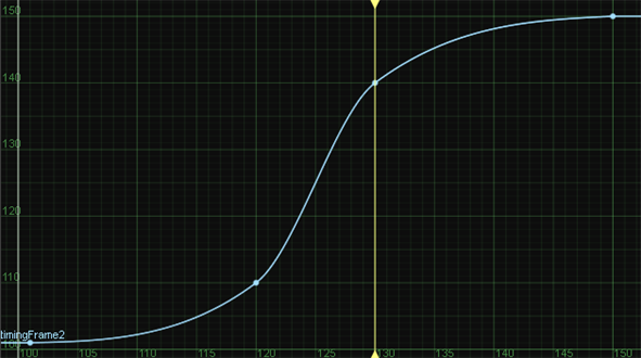 Once you've added all the required keyframes, connect the Viewer to the Kronos node, and then click the Curve Editor tab to view your keyframes in context of the output sequence. |