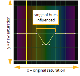 | 5. | Edit the curve as necessary - typically this means dragging down on control points in the hue region that you wish to suppress. |