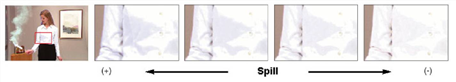 Using the Spill(+) and Spill(-) modes, you can gradually remove or recover the spill intensity on the foreground object by sampling the referenced color region repeatedly. The difference to the Spill Sponge tool is that Spill Sponge removes the spill component in a single action at one level and does not allow sampling the same pixel a second time. Even though just a small amount of spill needs to be removed, the Spill Sponge removes a preset amount without allowing any finer adjustment. To use the Spill(+) and