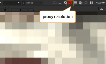 Nuke can generate low-res proxies for displayed frames as needed. Press Ctrl/Cmd+P or click the proxy mode toggle button on the Viewer to activate the proxy display mode.