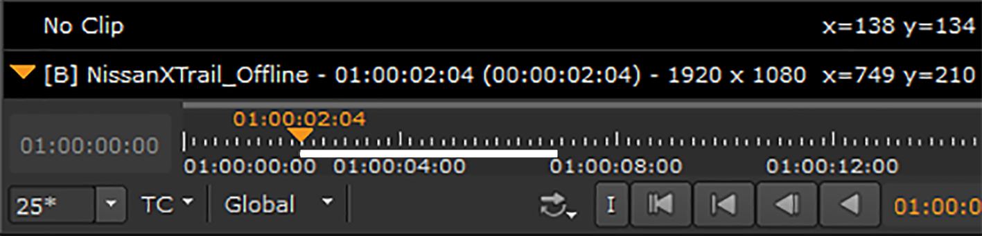 The timeline playhead indicates what is currently displayed in the Viewer using a number of different display markers. Swapping tracks between buffers automatically updates the playhead so that you always know which tracks you are looking at in the Viewer.