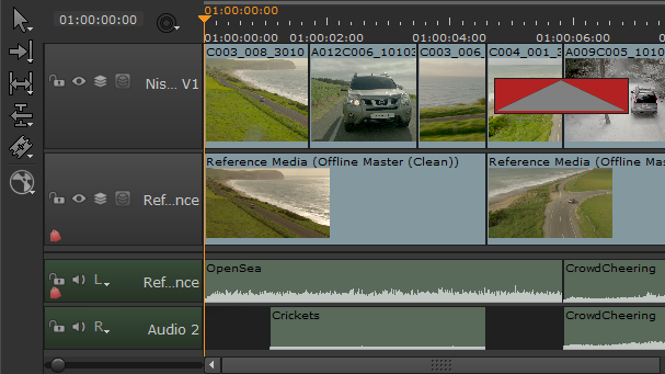 • Dissolve ends can not be dragged past the ends of the shots they are attached to, and if both items are deleted, then the dissolve is also deleted.