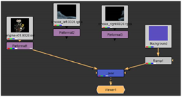| 5. | For the next layer, select the Reformat3 node, attached to smoke_right. Then hold down the Shift key and select Ramp1. |