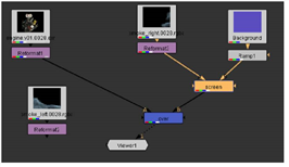 | 9. | An additional Merge node is required. Select Reformat2 for smoke_left. Hold down the Shift key and select the Over node (the first Merge node you inserted). |