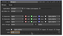 In the Merge node control panel, the operation parameter determines the compositing algorithm used to generate the result of the two inputs - the selected operation becomes the name of the node in the Node Graph.
