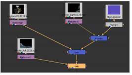 | 6. | Press M to insert a Merge node and composite one image over the other. This composites the “smoke_right” image over the background. |