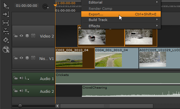 To transcode a selection of clips from a timeline: