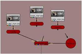 Inside the “Setting Up a 3D System” node tree, drag a selection around the nuke_sign.jpg node and the Card1 node to select them. |