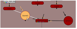 Drag the Scene1 node onto the obj/scn connector to insert the Scene1 node between Card1 and ScanlineRender1. |