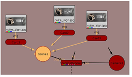 We mentioned earlier the Scene node creates a place where multiple objects may be seen by the camera and the render node. If you only have a single object, you don’t need a Scene node, but where’s the fun in that? Scene nodes make it possible to really tap into Nuke’s ability to handle huge amounts of 3D information, and you should know how to use it.