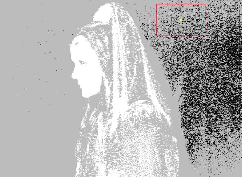• Gray pixels are a blend of foreground and background pixels in the final composite. You need gray pixels around the edge of the foreground to get a good key at the foreground edge. Pixels that are a blend between the foreground and background are shown in just one shade of gray. This is done to highlight potential problems with the key. These gray pixels may represent a foreground/background blend of 50/50 or 99/1. No distinction is made as to this ratio.