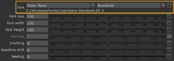 Note: Only fonts that are physically stored in a file are available in the font controls. As a result, the list of system fonts available in Nuke may be different to that available in other software applications on the same machine.