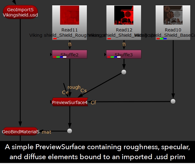The PreviewSurface node represents the preview shader from the Universal Scene Description standard. It is a basic material that can be used as a standard solution when switching between pipelines and different applications. For example, a game pipeline may rely on metallic workflows and film on specular workflows. PreviewSurface supports either by enabling or disabling the Use Specular Workflow control.