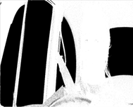 Note the steering wheel is black when it should be white. If you look at the composite, you can see the background showing through here. Also, some of the fine hair detail on the actor, visible in the figure on the left, has been eroded in the figure on the right.