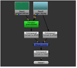 This can be useful if you want to do your compositing using a Merge node (with operation set to matte) rather than Primatte. This allows you to color correct, transform, and otherwise process your image before compositing it over the background. Note, however, that Primatte works within the sRGB colorspace, whereas Nuke works within a linear colorspace. This means you need to add a Colorspace node after both Primatte and your original background image to convert their colorspaces to sRGB, then do your color corrections or transforms, merge the images together, and, finally, use another Colorspace node to convert the result back to linear.