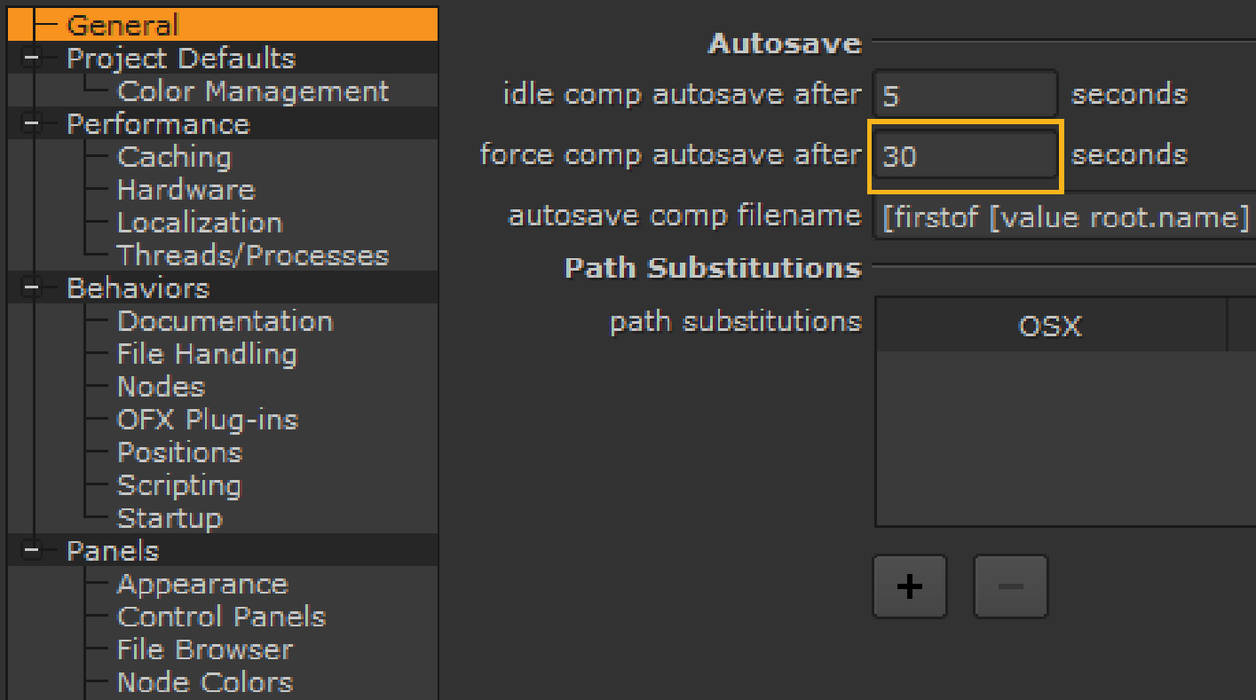 Tip:  The .autosave files can still be useful, even when you properly exit Nuke, because they are not deleted from the directory. You can, for example, rename an .autosave file to create an archive of the previous version of your project file.