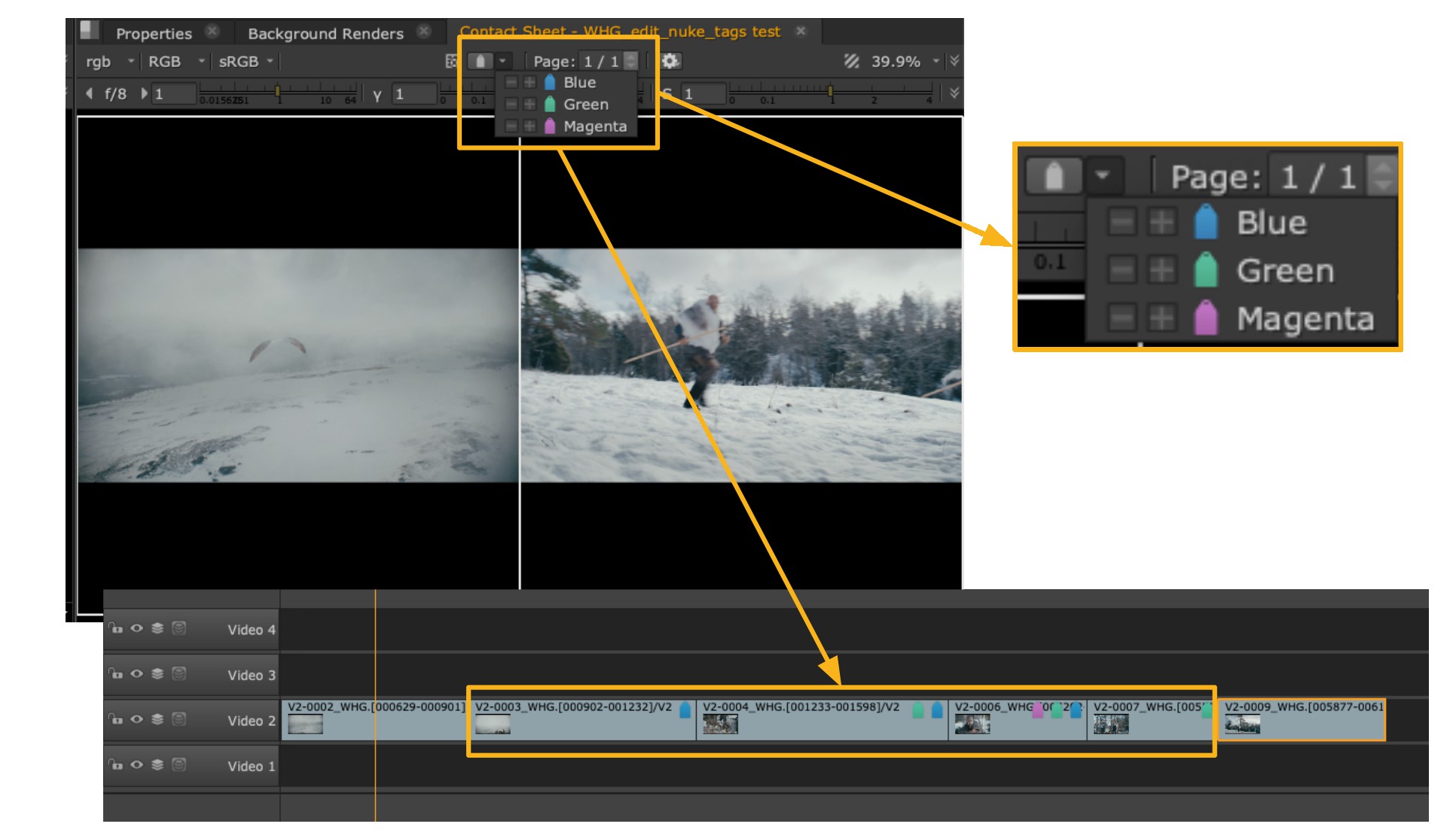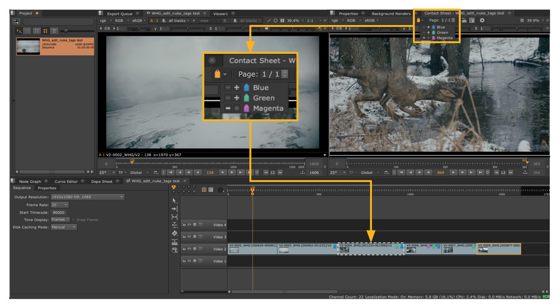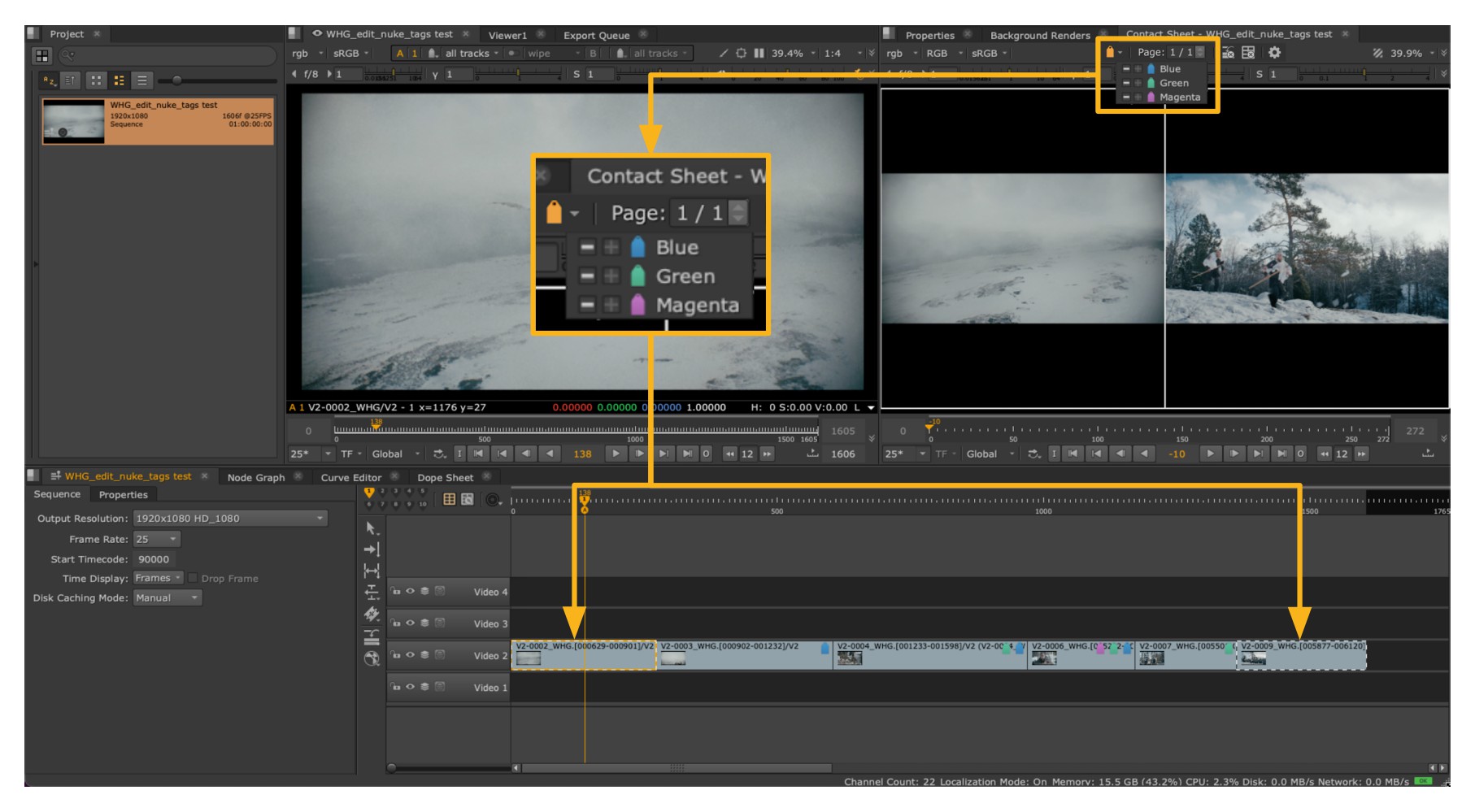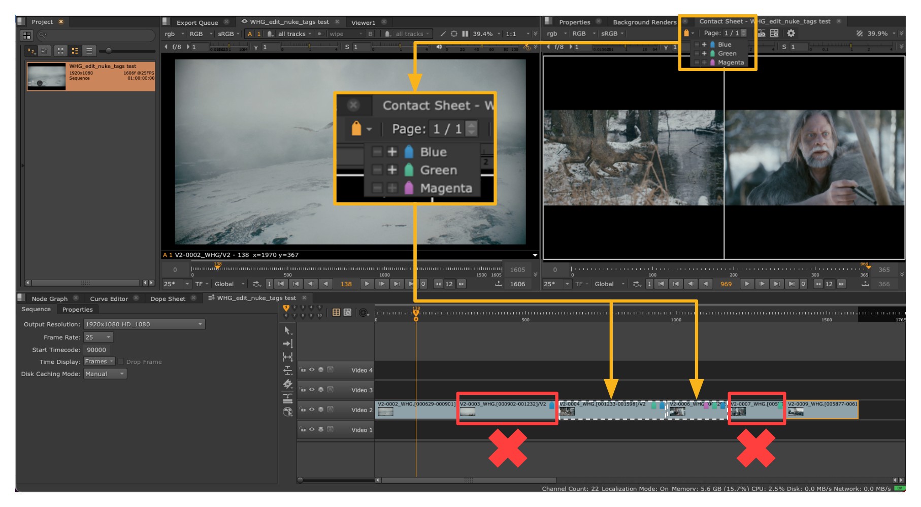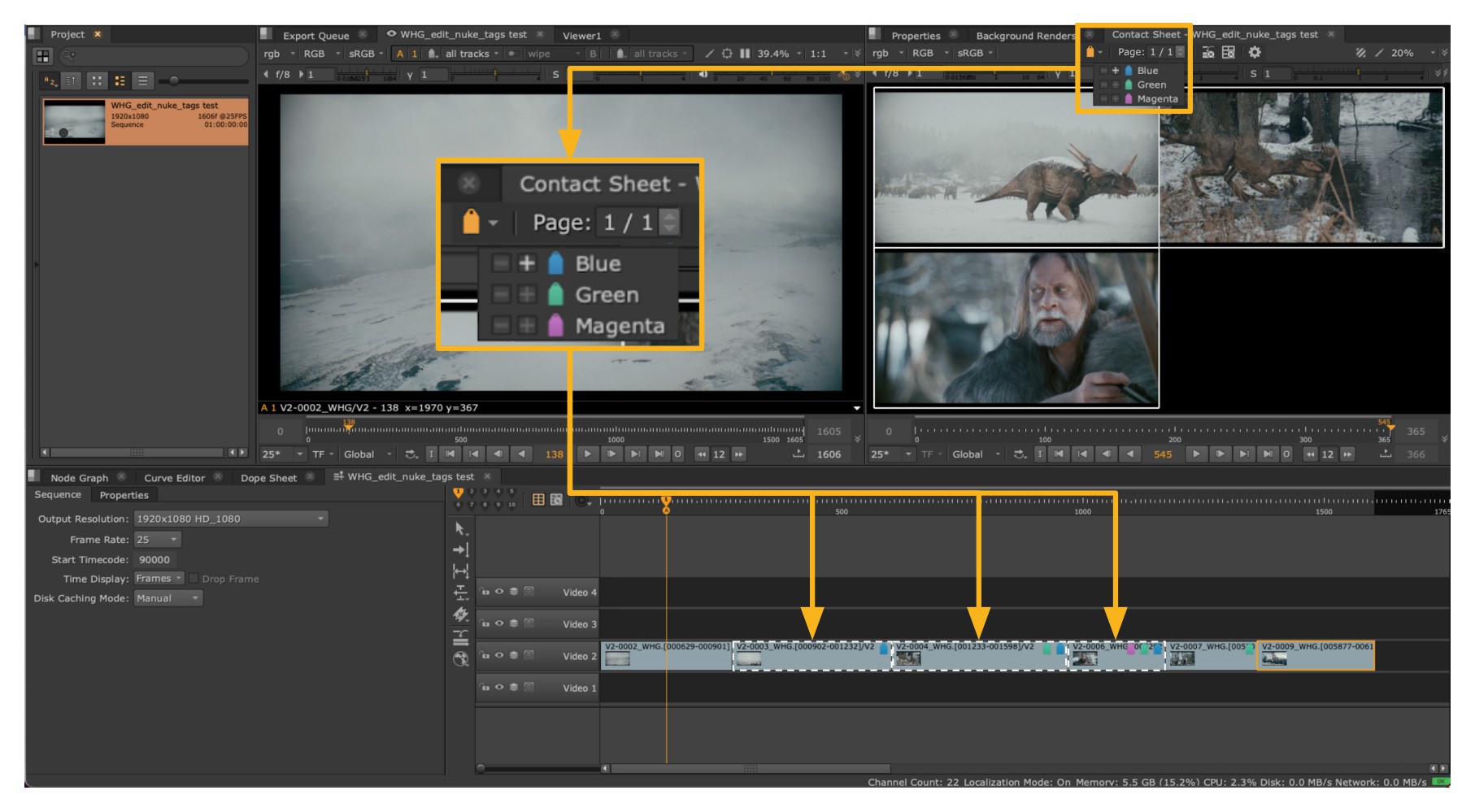 In addition to manually choosing the shots with Pick Mode, you can also populate the Contact Sheet Viewer by using tags on shots in the Timeline.
