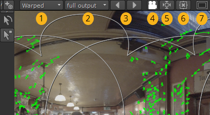 You can view the full output or individual views using the tools at the top-left of the Viewer. Each view is available as the warped result or as the source view in latlong and rectilinear.