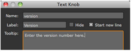 | 3. | Enter version as the Name for the control, Version as the Label, and Enter the version number here as the Tooltip. Click OK and Done to close the dialogs. |
