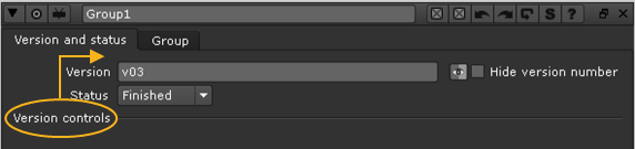 From now on, whenever Hide version number is checked in the Group controls, the Text1 node is disabled and you cannot see the version number it would otherwise create.