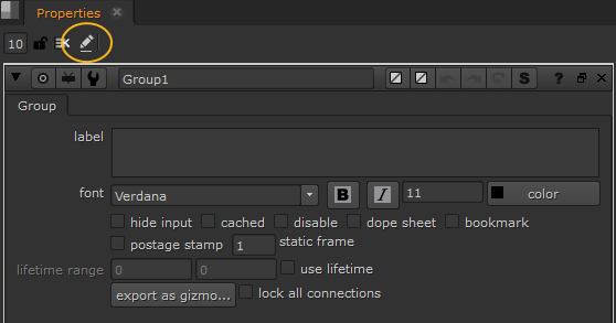 at the top of the Group Properties panel to exit edit mode. See Accessing Gizmos in Nuke for information on how to access your gizmo in Nuke.