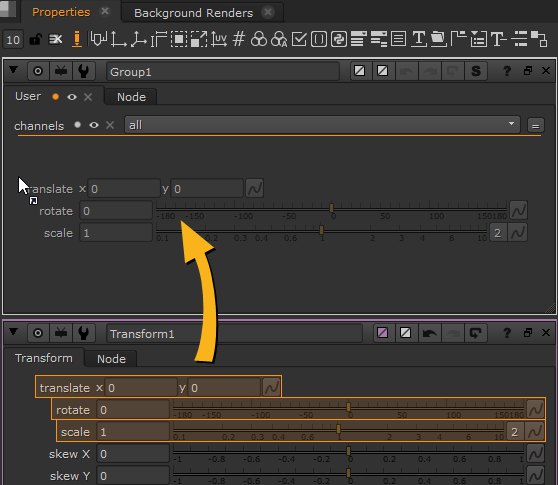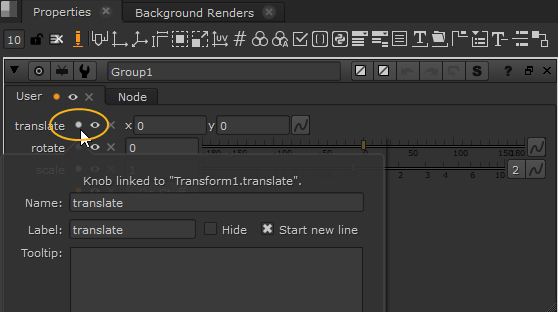 The components you can edit depend on the knob type. For example, a translate knob from a node within the Group allows you to edit the following: