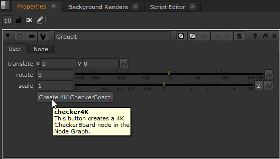A more complex example is the Python Script Button knob from the User Knob Editor. Adding a Python knob to the Properties panel allows you to edit an additional component, Script. The Script field adds Python to the knob, which is executed when you click the button. For example: