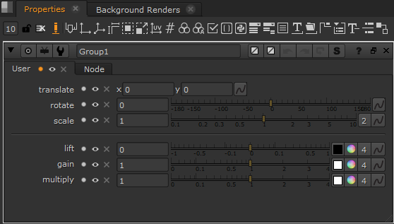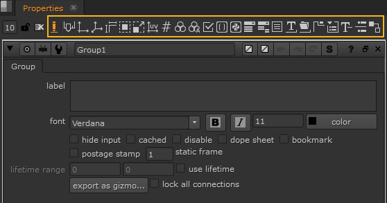 You can drag-and-drop knobs between open node Properties panels or add your own using the knob icons listed at the top of the panel. You can also order, hide, customize, and delete knobs within the panel.