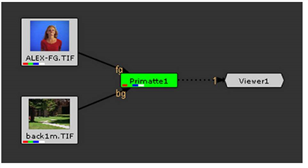 2.   Connect a foreground image to the Primatte node’s fg input and a background image to the bg input.
