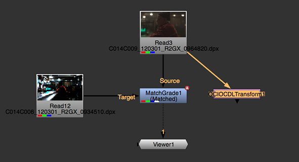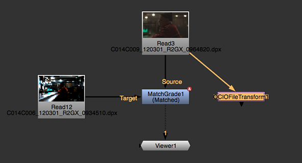 • Connect MatchGrade's Source input to the clip to which you want to apply the color transform.