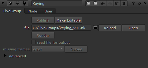 Just like Precomps, LiveGroups can store independent, open source .nk files, allowing you to save a subset of the node tree as a separate .nk script, render the output of this saved script, and read the rendered output back into the source comp as a single image input.