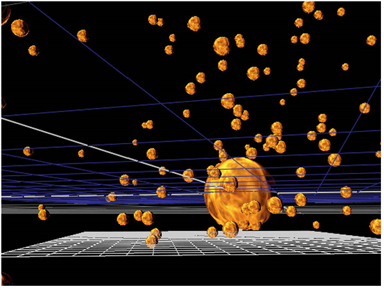 With the ParticleBounce node, you can make your particles bounce off the shape of a 3D object instead of traveling through it. Connect this node to your other particle nodes, and adjust the ParticleBounce controls: