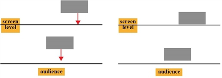 Changing convergence changes the perceived depth of the images. It moves all the elements in the image backwards or forwards a fixed distance while keeping the distance between them the same. This is illustrated in the figure below, where the gray rectangles represent elements depicted in a stereo image.