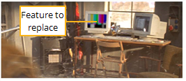 The CornerPin2D node is designed to map the four corners of an image sequence to positions derived from tracking data. In practice, this node lets you replace any four-cornered feature with another image sequence. For example, suppose you needed to replace the monitor image in the fast-panning shot shown below.